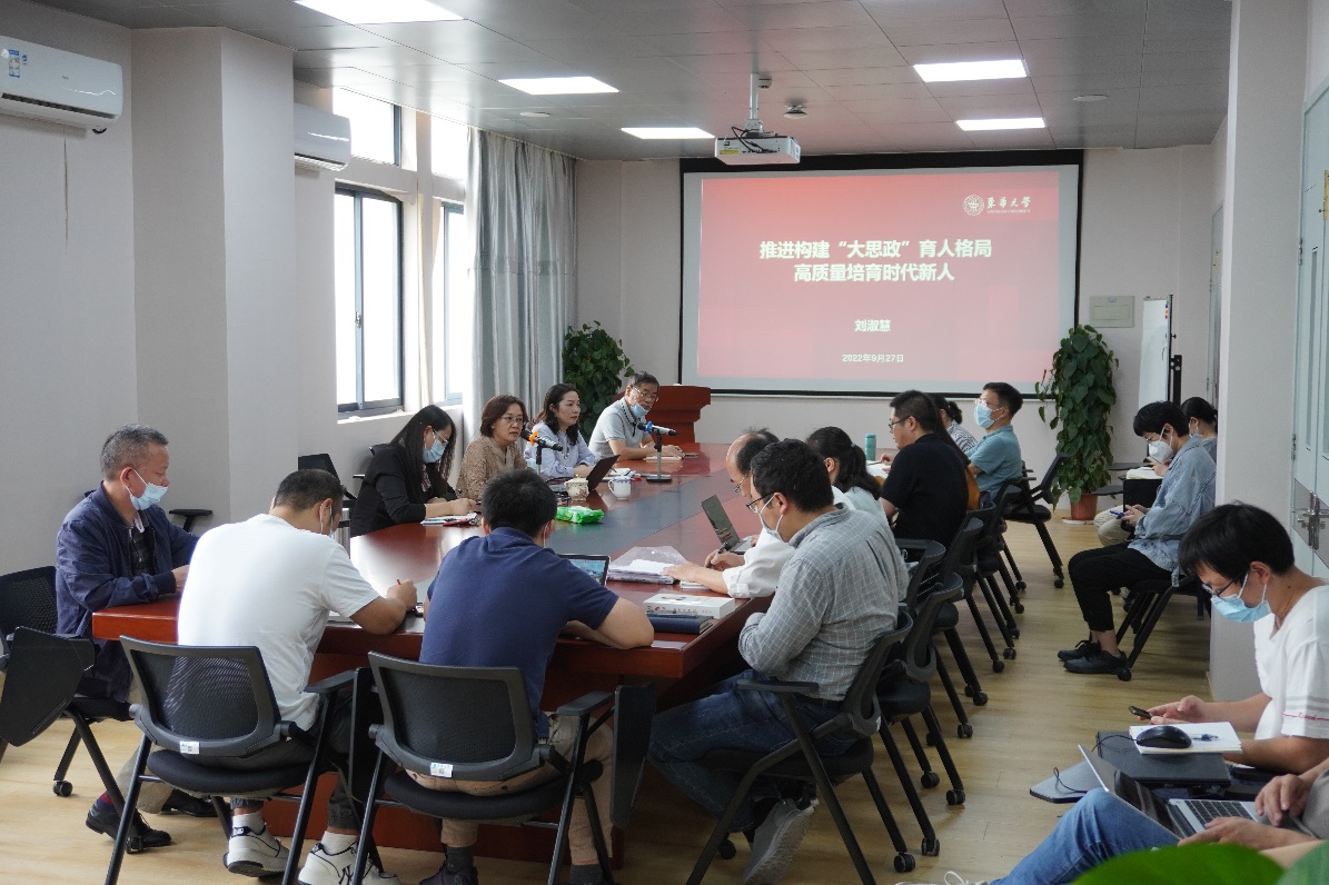 9月27日下午,学校党委副书记刘淑慧以“推进构建‘大思政’育人格局,高质量培育时代新人”为主题,为36365线路检测中心no1思政课教师讲授专题党课。学院领导班子成员及思政课教师现场听课,党课由学院党委书记戴叶萍主持。