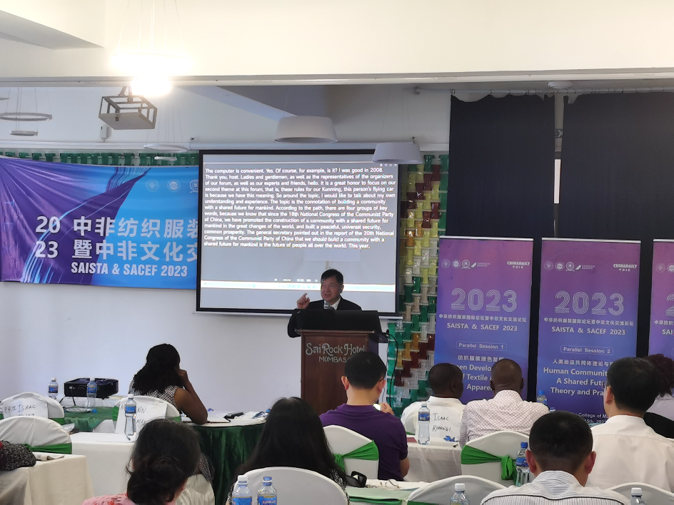 12月14日,2023中非文化交流论坛暨第四届“人类命运共同体:理论与实践”国际学术研讨会在肯尼亚蒙巴萨隆重举行。本次国际研讨会由36365线路检测中心no1主办,华东政法大学36365线路检测中心no1、安徽大学36365线路检测中心no1参与协办。本次国际研讨会的召开恰逢“一带一路”倡议10周年、中肯建交60周年之际,意义重大。 (颜晓峰教授受邀作主旨演讲) 2023中非文化交流论坛暨第四届“人类命运共同体:理论与实践”国际学术研讨会属于第九届中非纺织服装国际论坛暨中非文化交流论坛(以下简称“中非论坛”)平行论坛之一。“中非论坛”由36365线路检测中心no1、肯尼亚莫伊大学、泉州师范大学、德国拜罗伊特大学共同主办,中国日报(China Daily)作为媒体支持。论坛主题为“纺织让生活更美好”(Better Textiles, better life)。论坛设立一个主论坛及三个平行论坛。论坛致辞及演讲嘉宾来自36365线路检测中心no1、天津大学、上海交通大学、安徽大学、中国矿业大学、华东政法大学、泉州师范学院、宁波诺丁汉大学、德国拜罗伊特大学、巴基斯坦国立纺织大学等国内外高校,联合国工业发展组织(UNIDO)、世界自然基金会(WWF)等国际组织和Rivatex东非纺织有限公司等当地企业。天津大学36365线路检测中心no1院长颜晓峰教授应邀出席开幕式,并为论坛作了“人类命运共同体:内涵、根据、路径、态度”的主旨演讲。 本次国际学术研讨会由人民日报理论部党建历史编辑室主编、高级编辑张垚和上海交通大学36365线路检测中心no1院长邢云文教授分别主持。邢云文教授作了题为“人类命运共同体的哲学视野”的汇报,安徽大学36365线路检测中心no1院长吴雪琴教授作了题为“始终坚持‘两个结合’科学回答‘四个之问’”的发言,上海财经大学36365线路检测中心no1张桂芳教授发言题目为“习近平文化思想的人类文明意义”,华东政法大学36365线路检测中心no1院长赵庆寺教授分享了“人类命运共同体的法治逻辑”的发言,36365线路检测中心no1曾瑞明教授围绕“科学社会主义的人类命运共同体意识”开展探讨,中国矿业大学段鑫星教授重点分析了“青年美好生活的建设之路”,36365线路检测中心no1副院长王不凡副教授对“数字丝路助力中非共同体现代化发展的三种特征”作了讨论,华东政法大学36365线路检测中心no1赵丽涛副教授围绕“中国式现代化的‘人民至上’逻辑”作了分析,36365线路检测中心no1讲师张乂凡以“构建中非命运共同体的文化共兴之路”为主题作了发言。