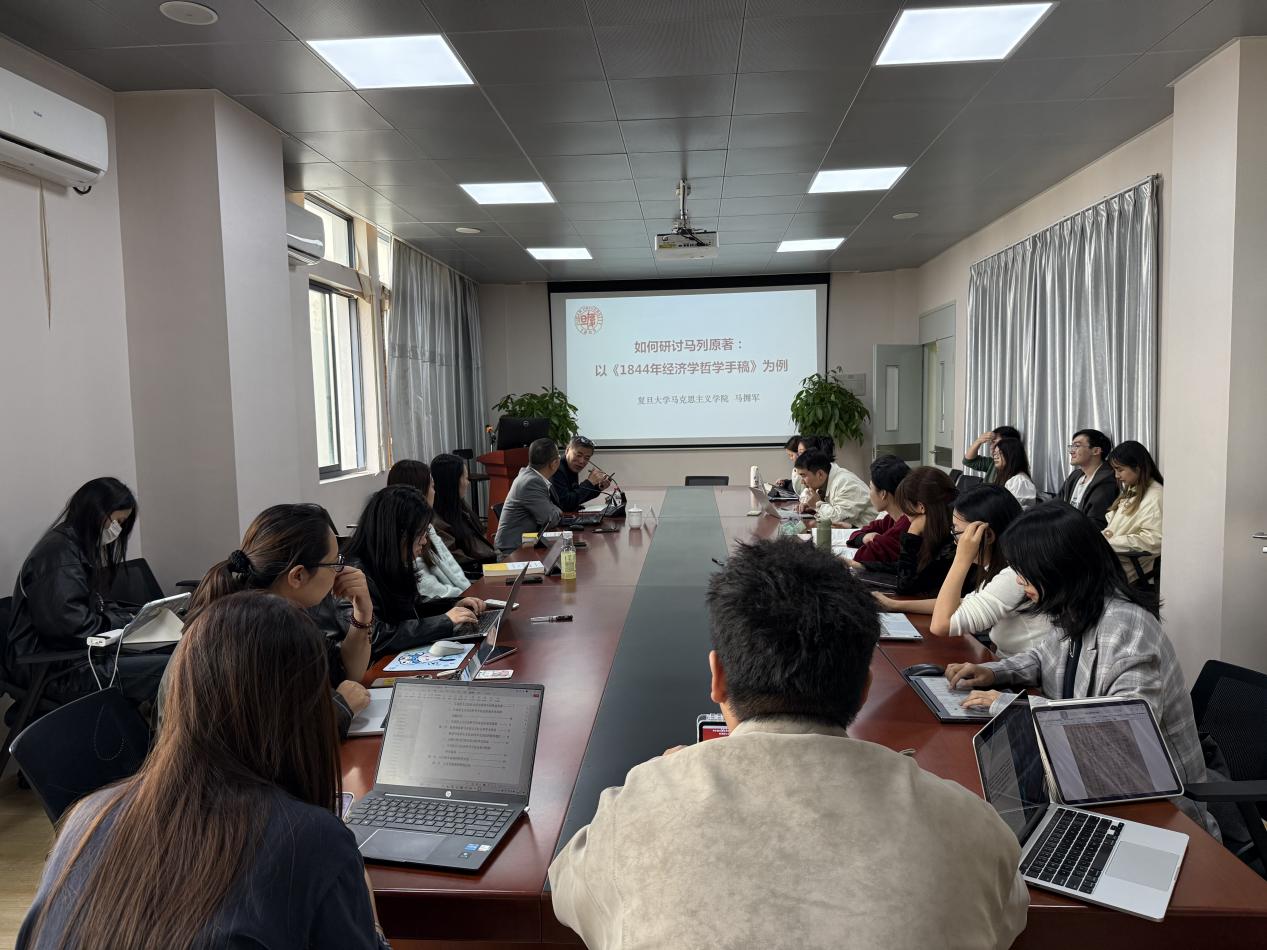 2025年11月3日下午,复旦大学36365线路检测中心no1教授、马克思主义基本原理学科带头人、博士生导师马拥军教授应邀为36365官网师生开展了一场以“如何研读马列原著:以《1844年经济学哲学手稿》为例”为主题的讲座。此次讲座由副院长陈向义主持。学院部分教师及所有研究生参加了此次讲座。